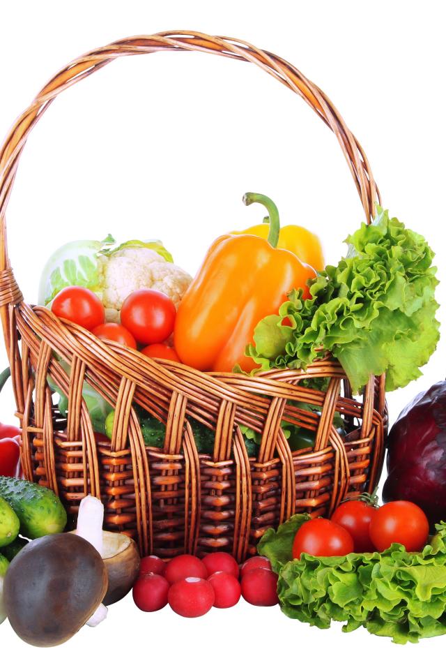 Wallpaper Basket with vegetables on a white background