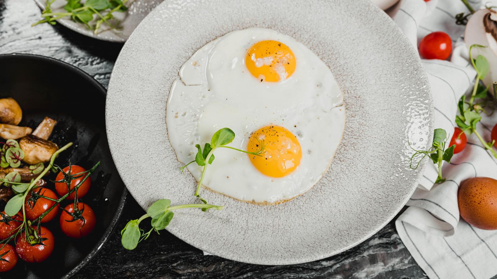 Wallpaper Fried eggs with vegetables on the table