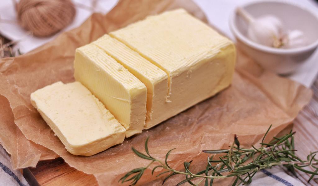 Wallpaper A piece of fresh butter on the table with rosemary and garlic