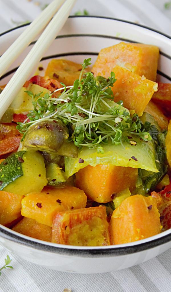 Wallpaper Spicy vegetable dish in a bowl with chopsticks