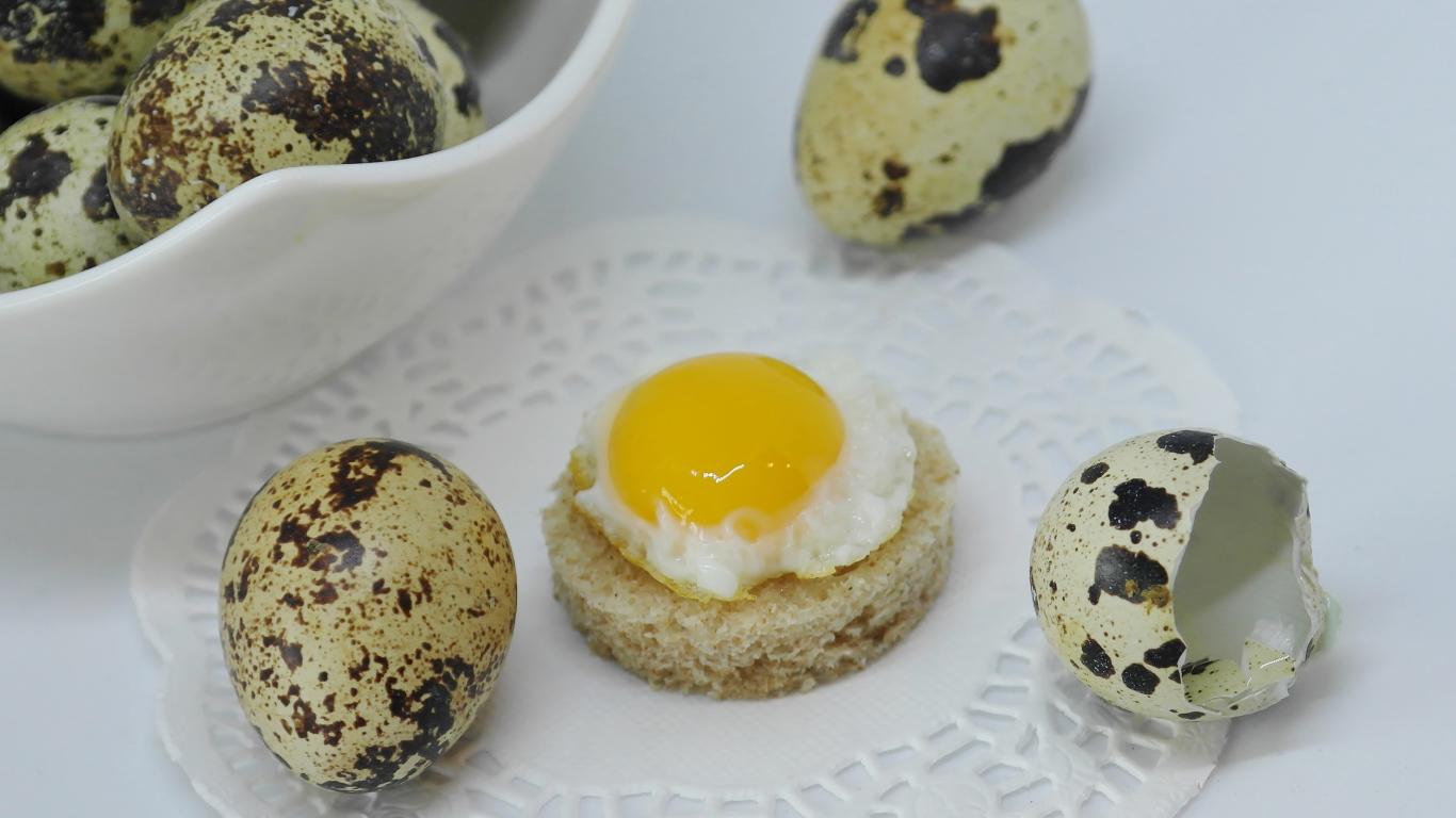 Wallpaper Croutons with scrambled eggs and tomatoes on the table with quail eggs