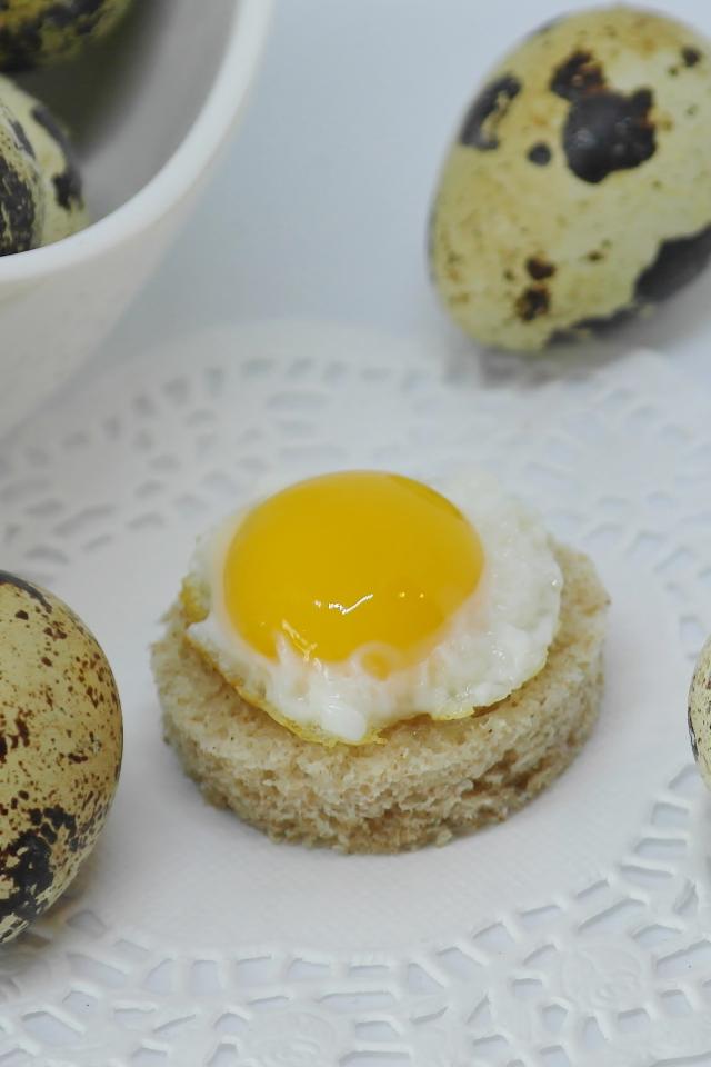 Wallpaper Croutons with scrambled eggs and tomatoes on the table with quail eggs
