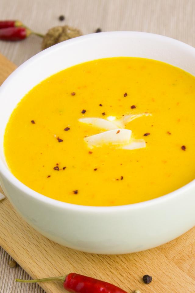 Wallpaper Pumpkin soup puree on a board in a white plate