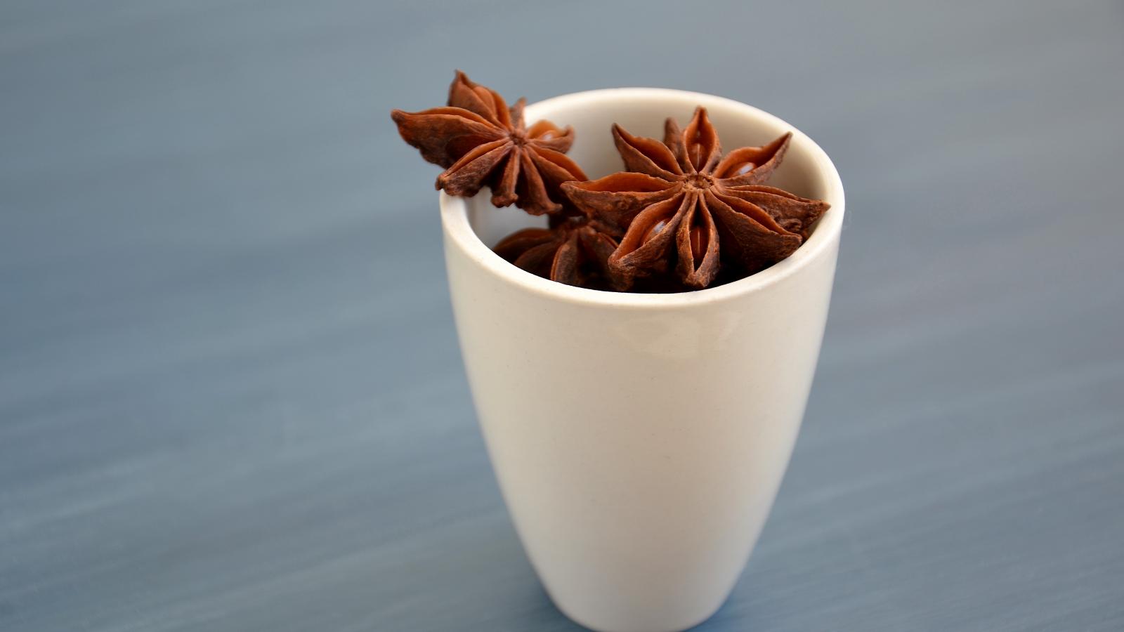 Wallpaper Star anise stars in a white cup on the table