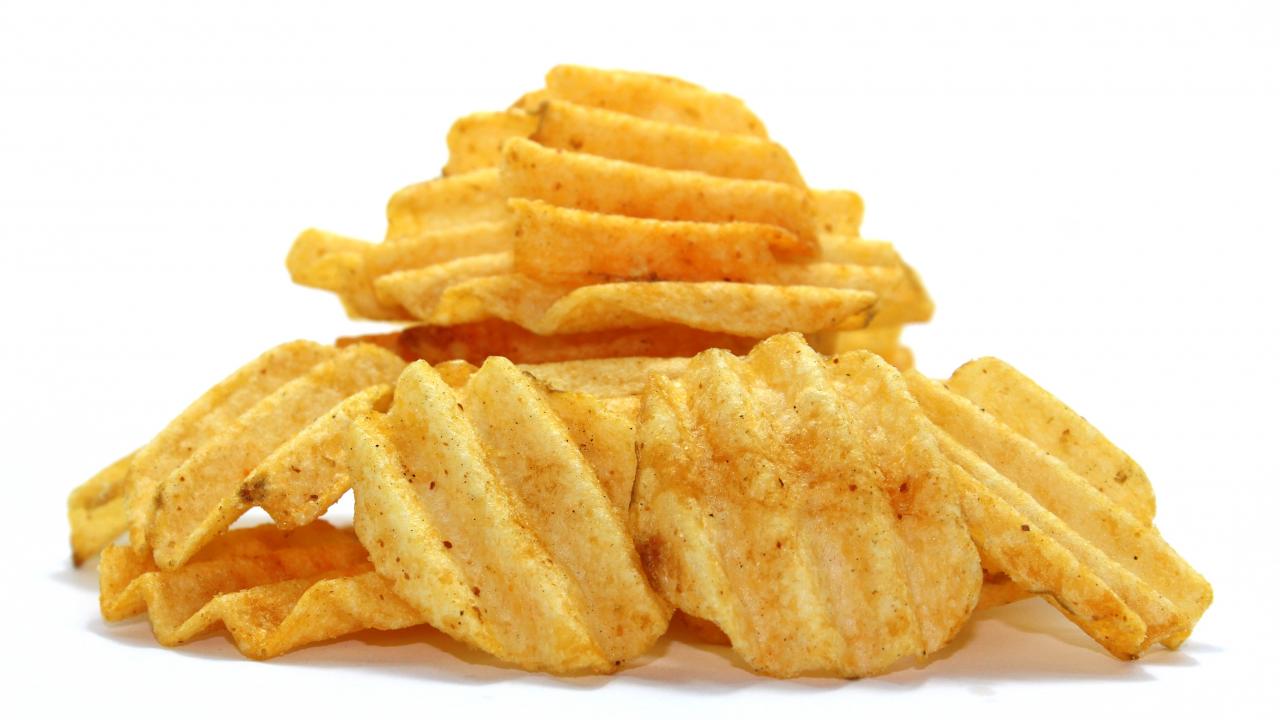 Wallpaper Appetizing potato chips on gray background