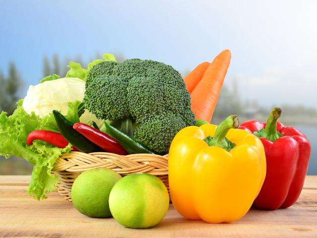 Wallpaper Fresh peppers, broccoli and carrots on the table
