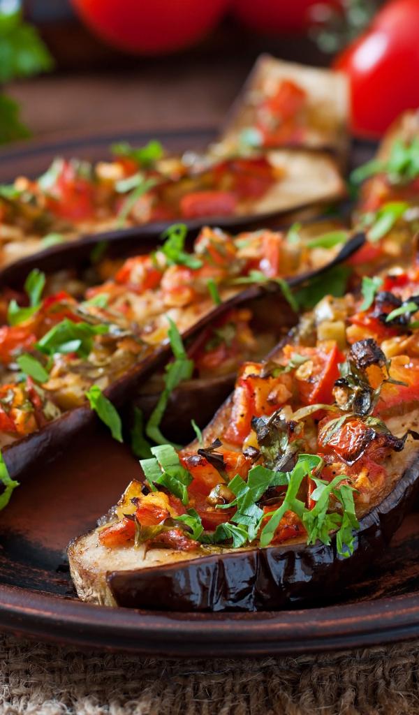 Wallpaper Eggplant stuffed with vegetables on a plate