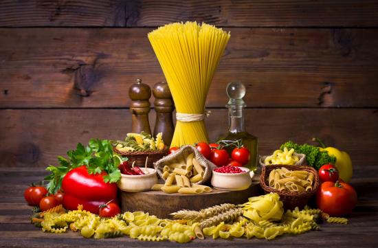 Wallpaper Lots of pasta on the table with vegetables