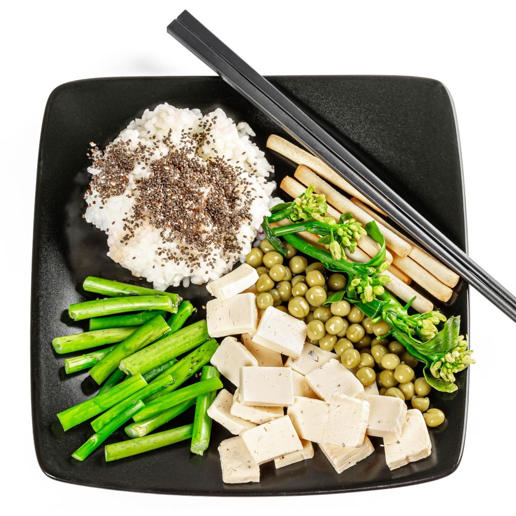 Wallpaper Vegetables, cheese and rice on a plate with chopsticks