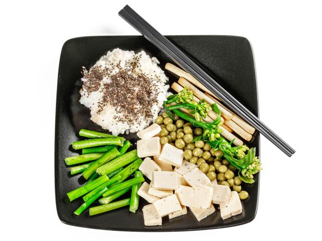 Wallpaper Vegetables, cheese and rice on a plate with chopsticks