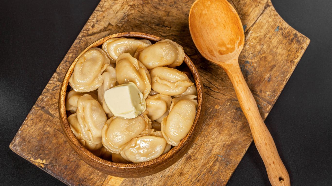 Wallpaper Dumplings in a wooden bowl with butter