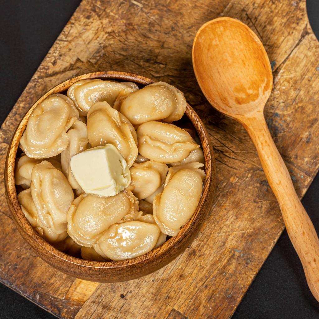 Wallpaper Dumplings in a wooden bowl with butter