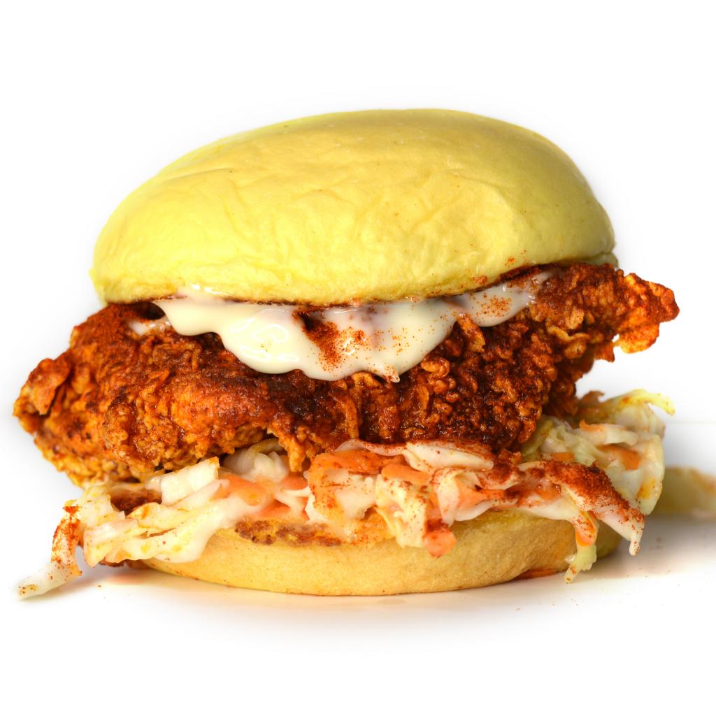 Wallpaper Big chicken burger with sauce on a white plate