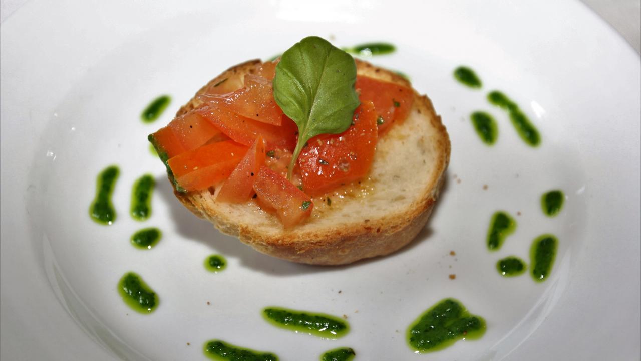 Wallpaper Bruschetta on a plate with tomatoes and sauce