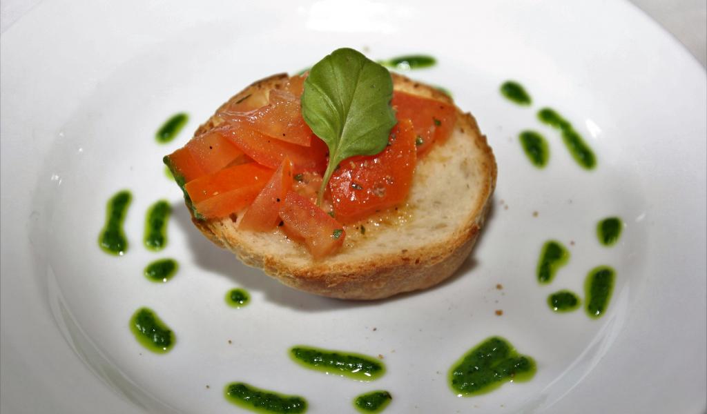 Wallpaper Bruschetta on a plate with tomatoes and sauce