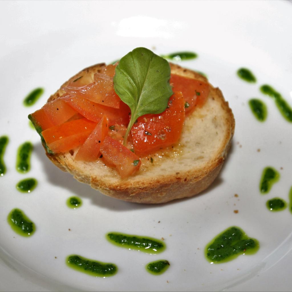 Wallpaper Bruschetta on a plate with tomatoes and sauce