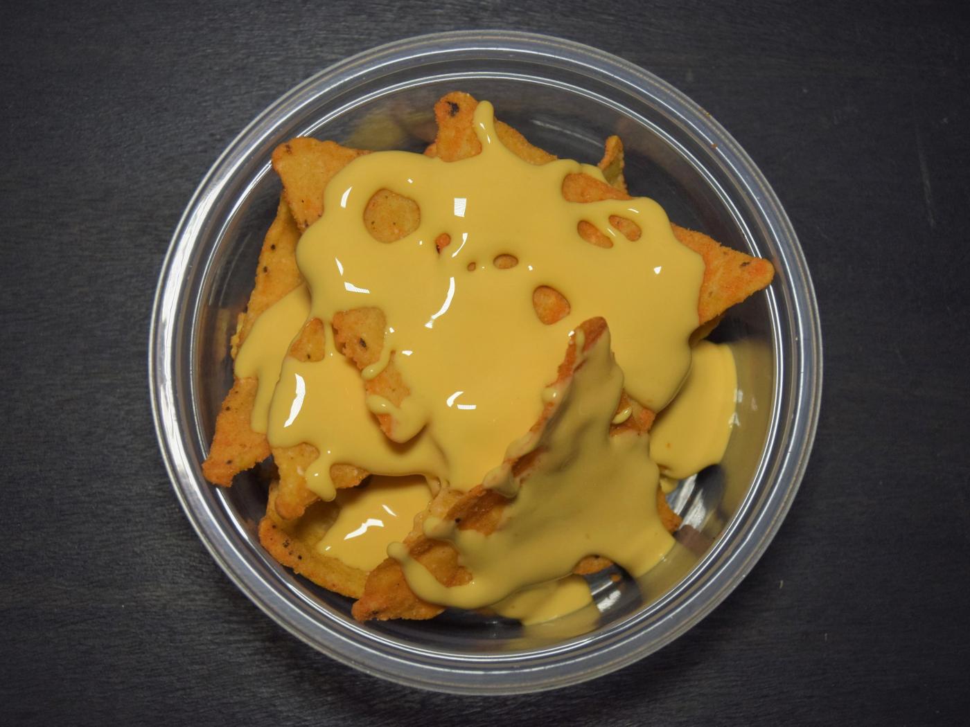 Wallpaper Nachos chips with cheese sauce in bowl on black background
