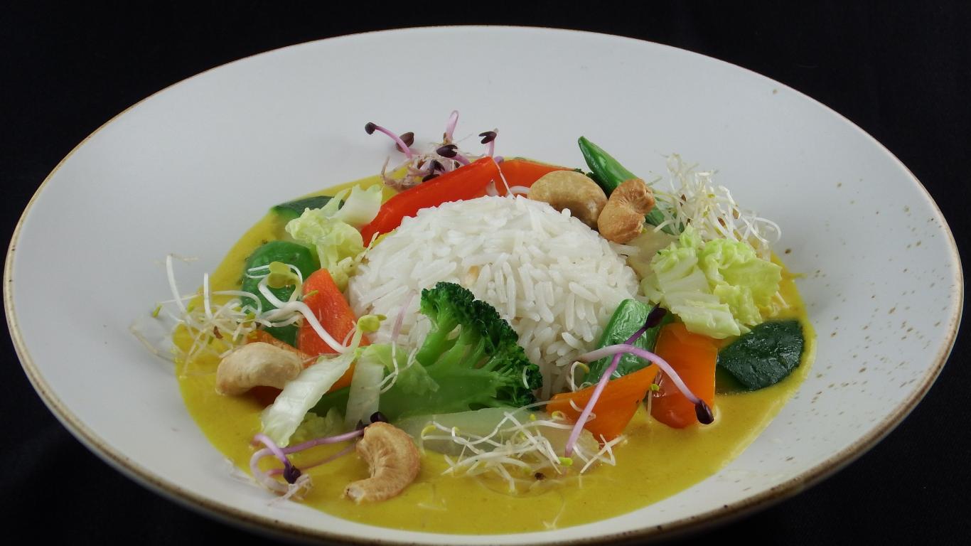 Wallpaper Steamed rice with vegetables in a large white plate