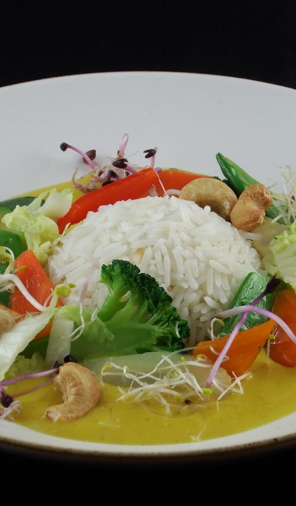 Wallpaper Steamed rice with vegetables in a large white plate