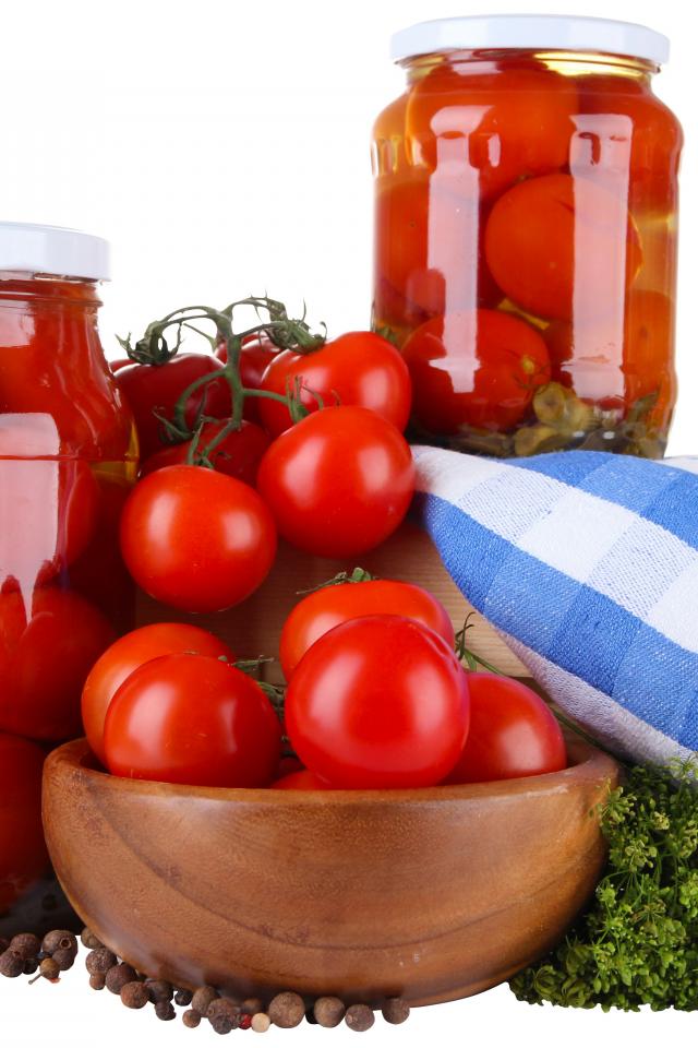 Wallpaper Pickled tomatoes in jars on a table with fresh