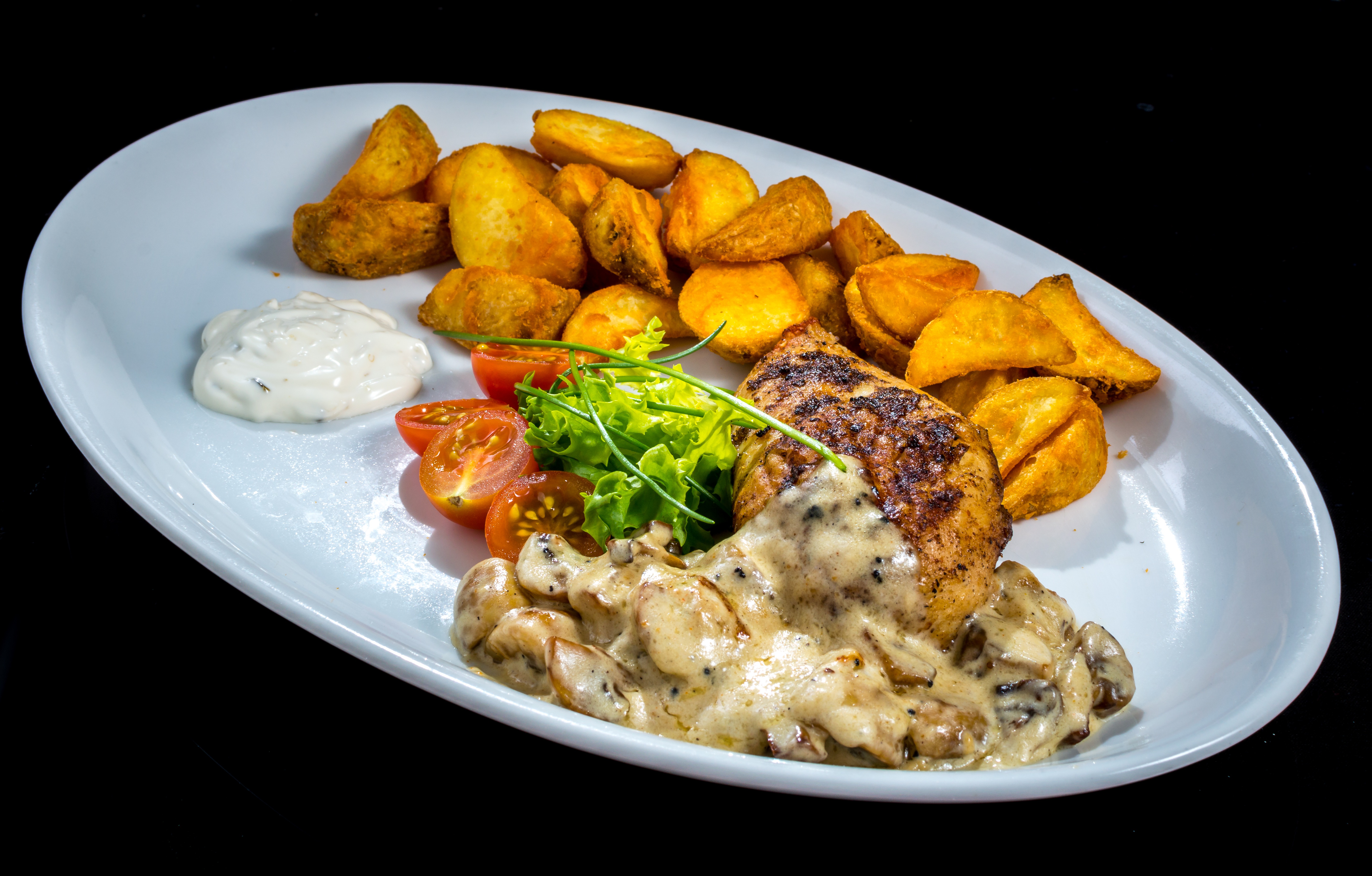Wallpaper Baked potatoes with mushrooms, meat and vegetables on a plate