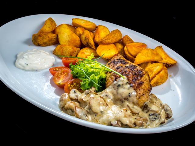 Wallpaper Baked potatoes with mushrooms, meat and vegetables on a plate