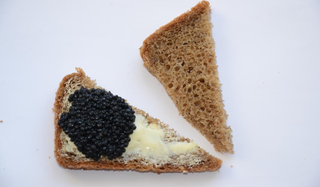 Wallpaper Black bread sandwiches with black caviar on a gray background