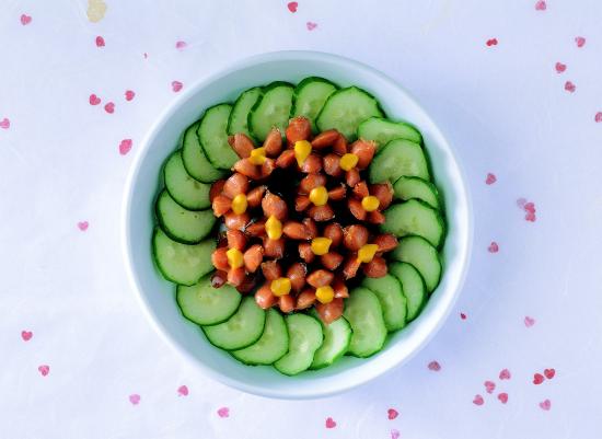 Wallpaper Cucumbers with sausages in a plate on the table