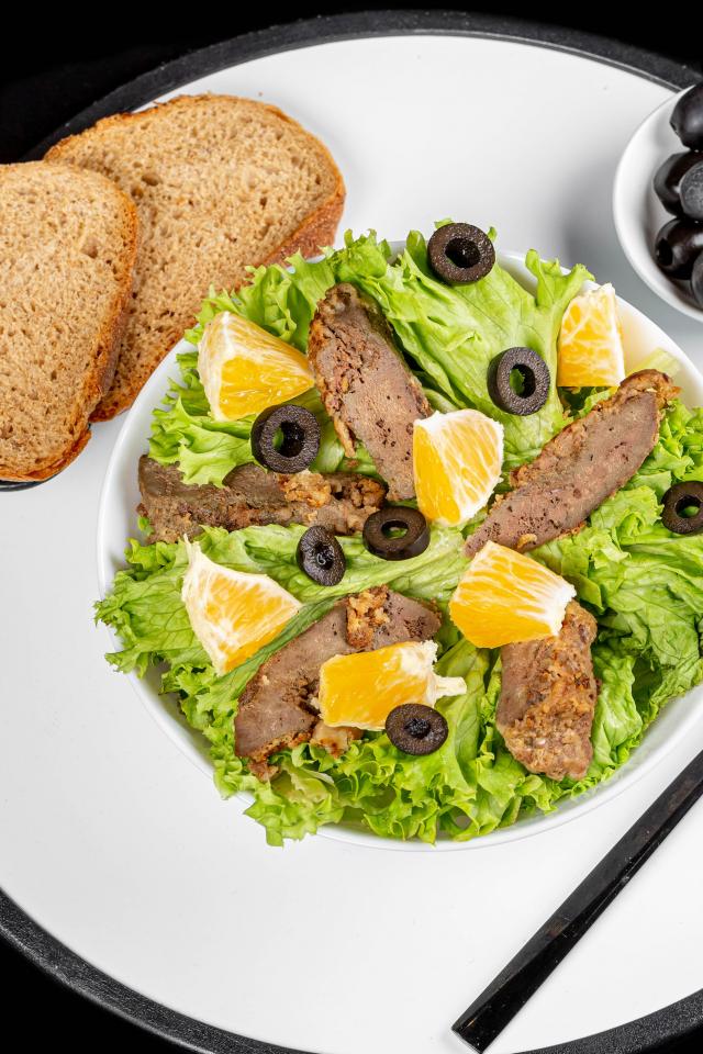 Wallpaper Lettuce leaves with meat on a table with bread