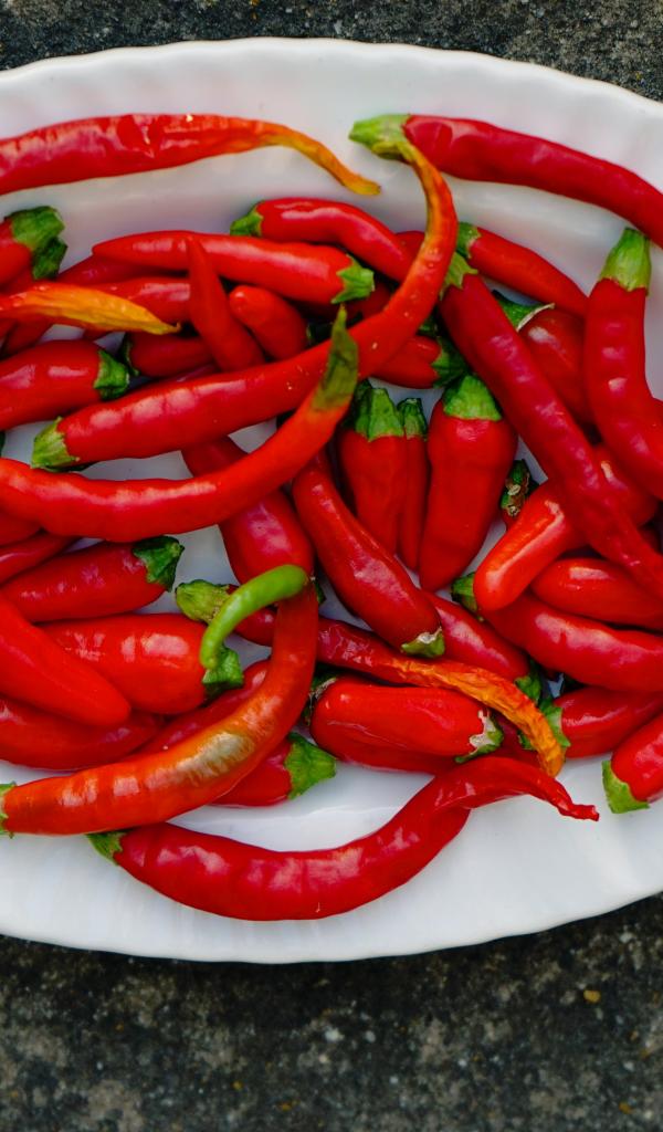 Wallpaper Hot red chili peppers on a large white plate