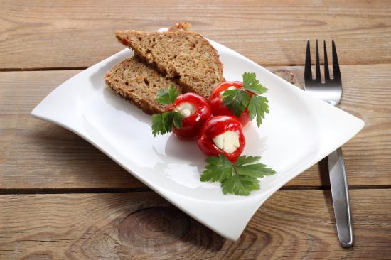 Wallpaper Stuffed peppers on a large white plate with bread