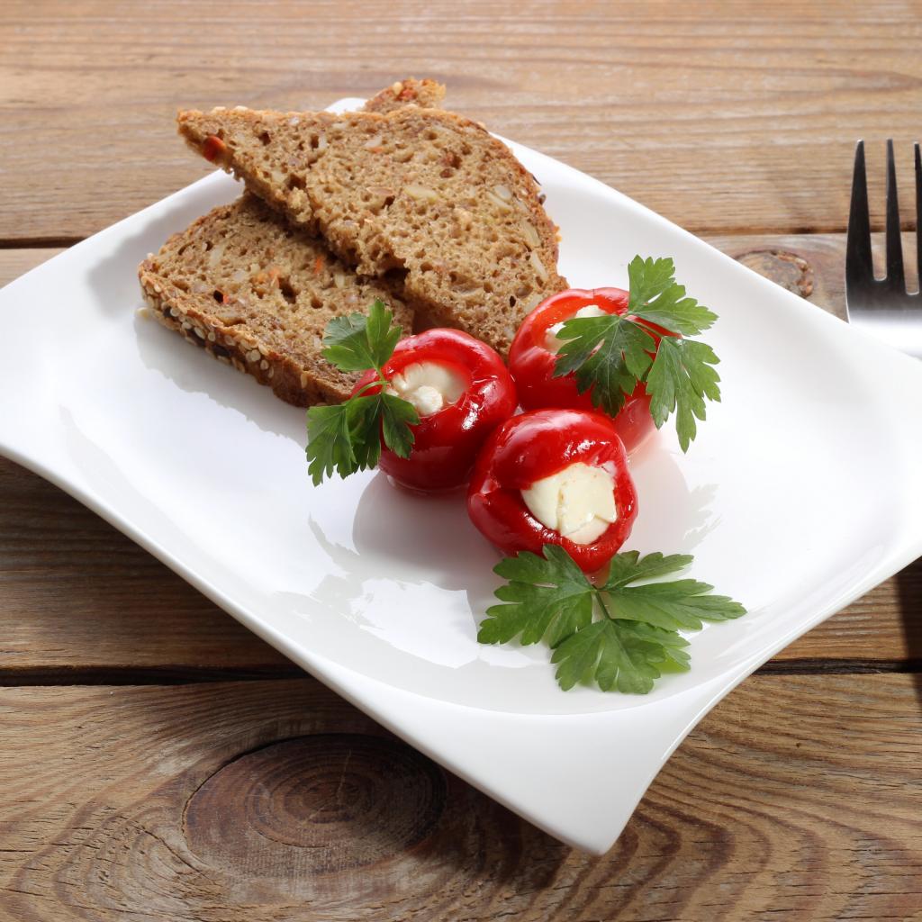 Wallpaper Stuffed peppers on a large white plate with bread