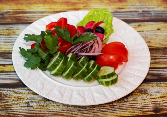 Wallpaper Fresh vegetables on a white plate on a wooden background