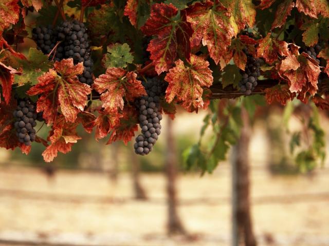 Wallpaper Grapes of blue grapes in yellow leaves