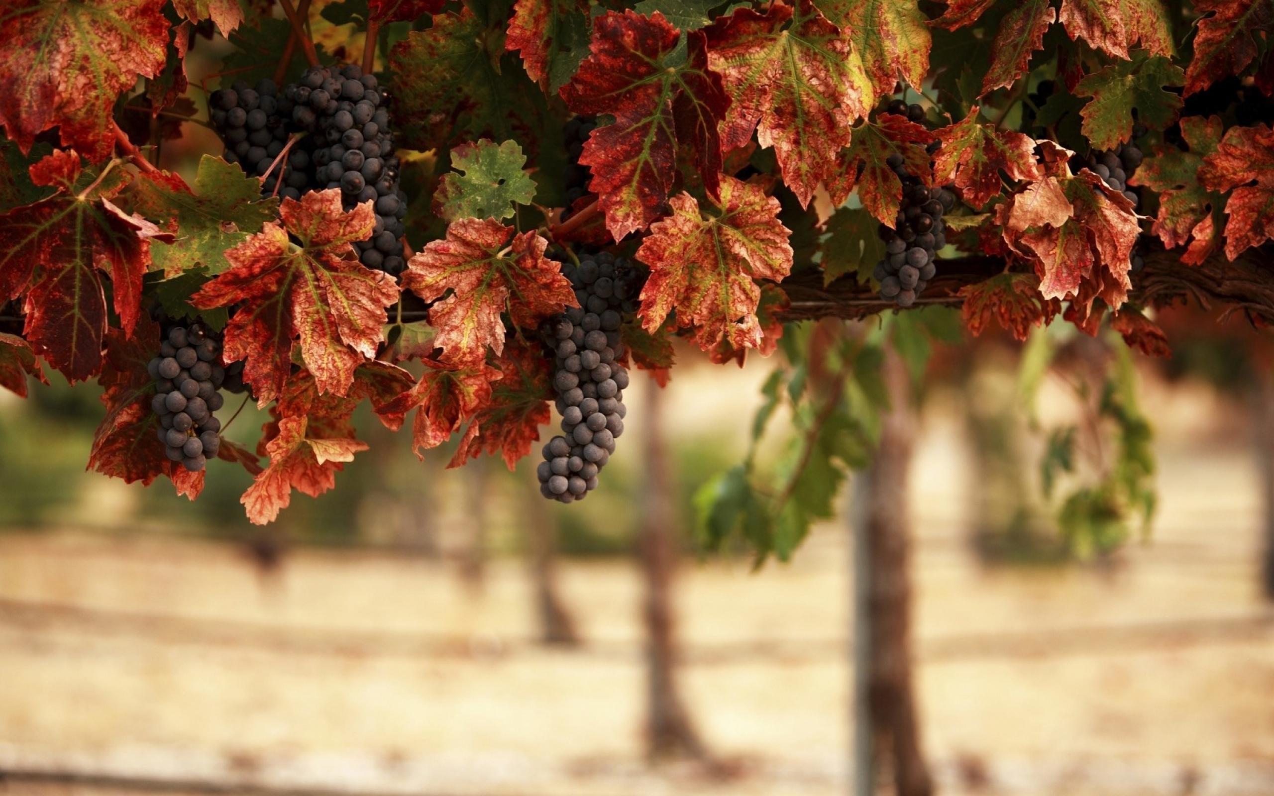 Wallpaper Grapes of blue grapes in yellow leaves