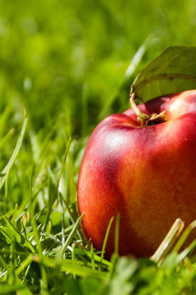 Wallpaper Big red nectarine in green grass