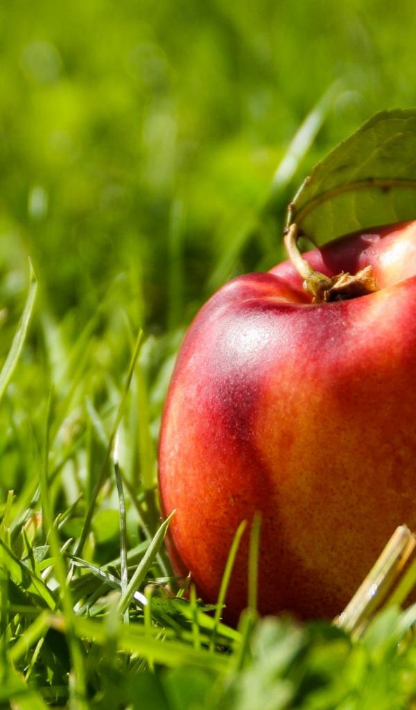 Wallpaper Big red nectarine in green grass