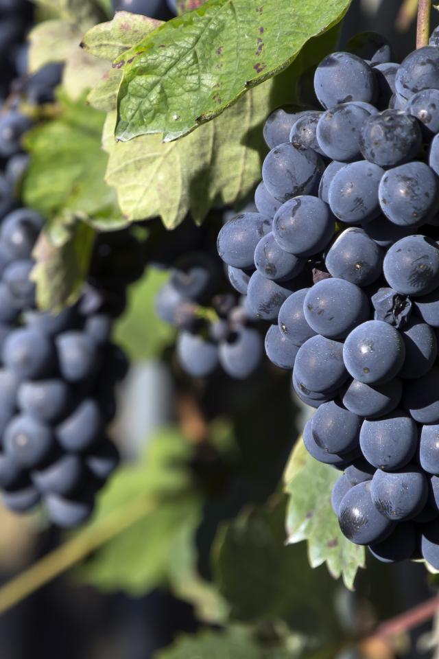 Wallpaper Vineyards with ripe blue grapes under the blue sky in autumn