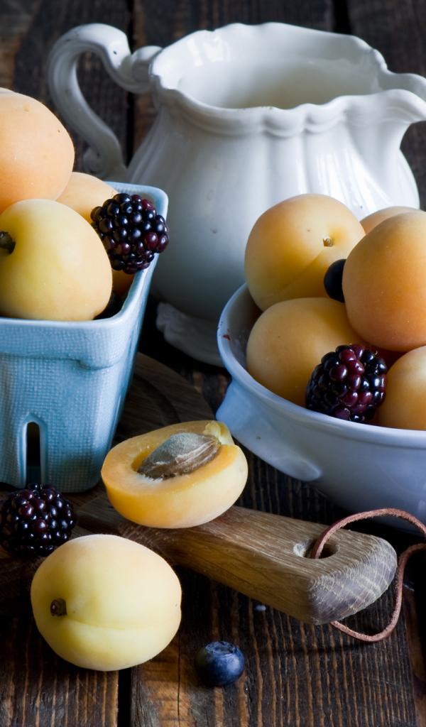 Wallpaper Ripe apricots and berries on the table