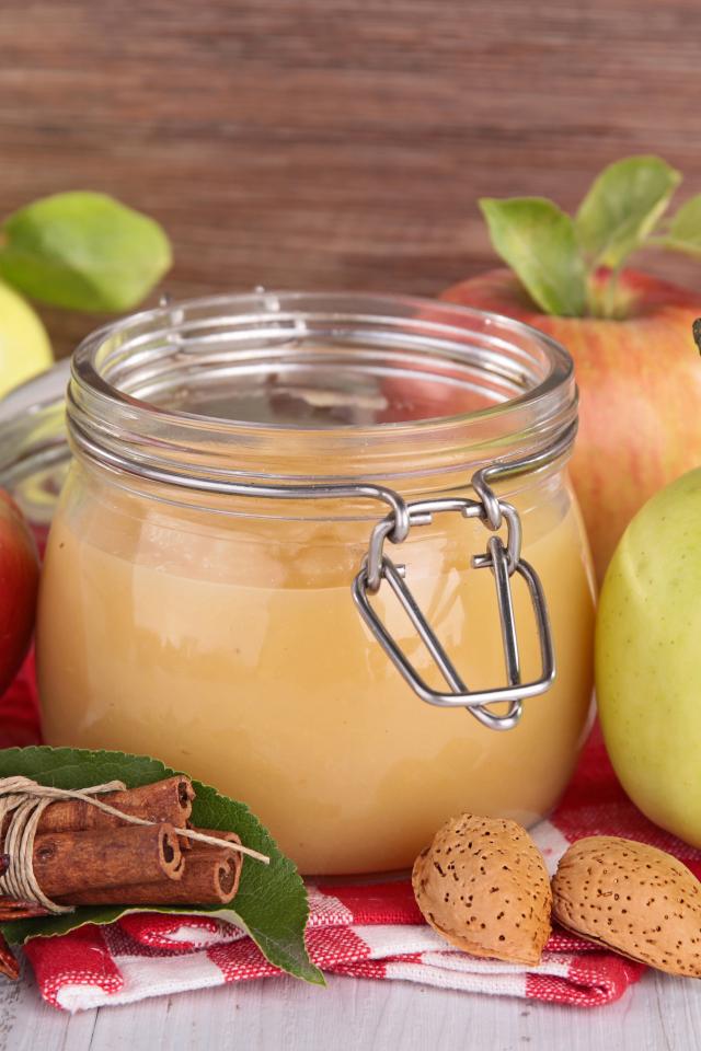 Wallpaper Bank of apple jam with spices on the table