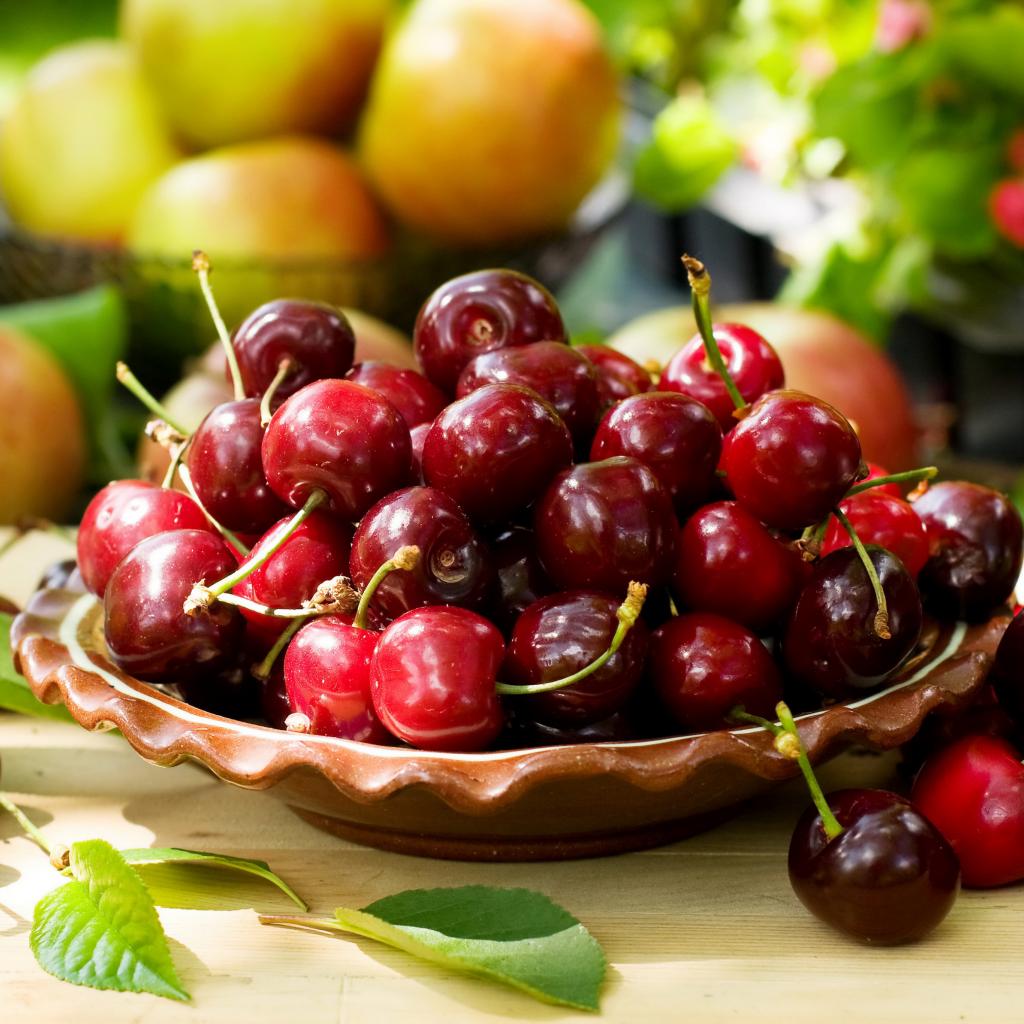 Wallpaper Ripe delicious cherry on a plate close-up