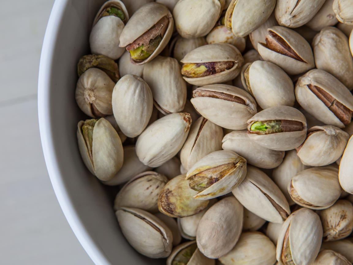 Wallpaper Pistachios on the table close up