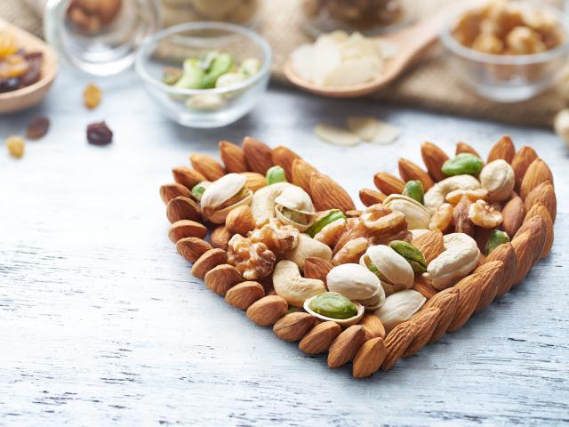 Wallpaper Heart of nuts on a wooden table