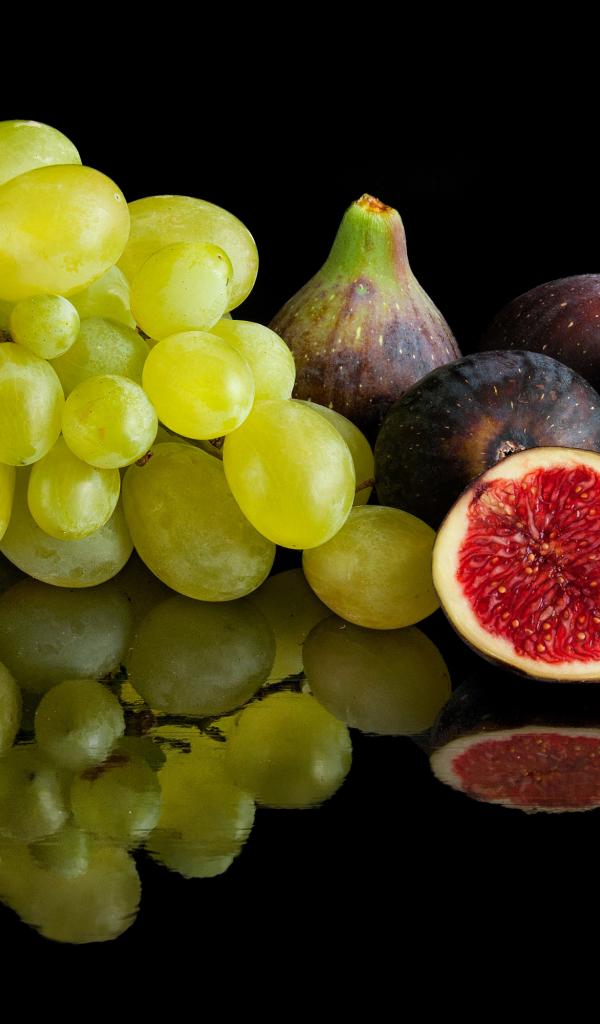 Wallpaper White grapes and figs on a black background