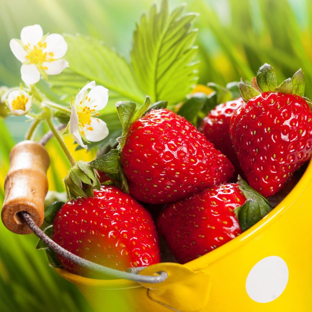 Wallpaper Red strawberry with white flowers