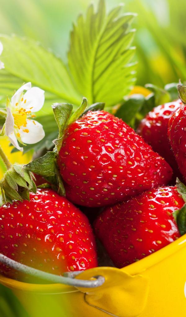 Wallpaper Fresh strawberry with yogurt for breakfast on a table with a white flower