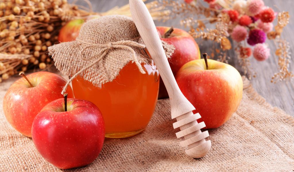 Wallpaper Nuts, honey, apples and pastries with raisins on the table for the holiday
