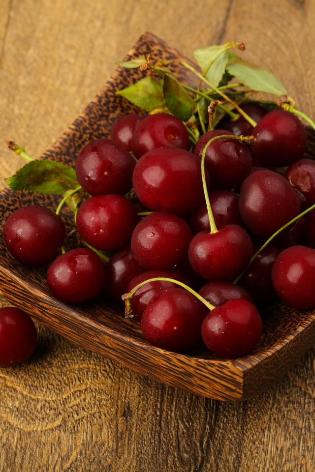 Wallpaper Ripe red cherries in a bowl on the table
