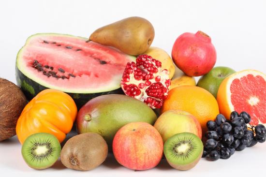 Wallpaper Appetizing ripe fruits and vegetables on a white background