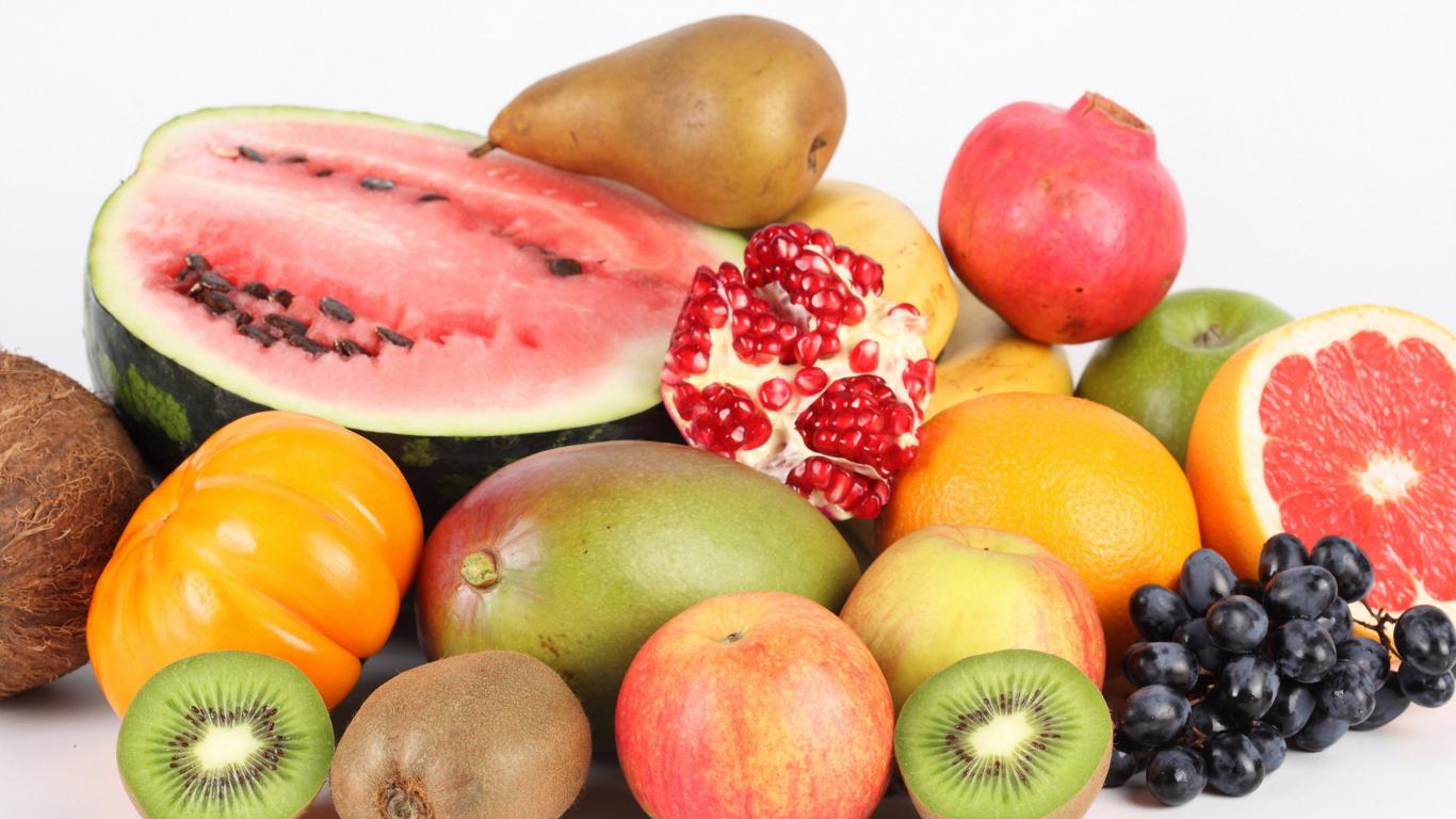 Wallpaper Appetizing ripe fruits and vegetables on a white background